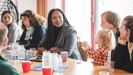 Sozialministerin Aminata Touré konnte sich beim Senior*innenfrühstück im Mehrgenerationenhaus Oase in Bad Oldesloe ein Bild davon machen, was hier alles ehrenamtlich auf die Beine gestellt wird: Von der Kinderbetreuung auf dem Spielplatz über gemeinsames Tanzen bis zur Silvesterfeier für Senior*innen, die sonst allein ins neue Jahr starten würden.